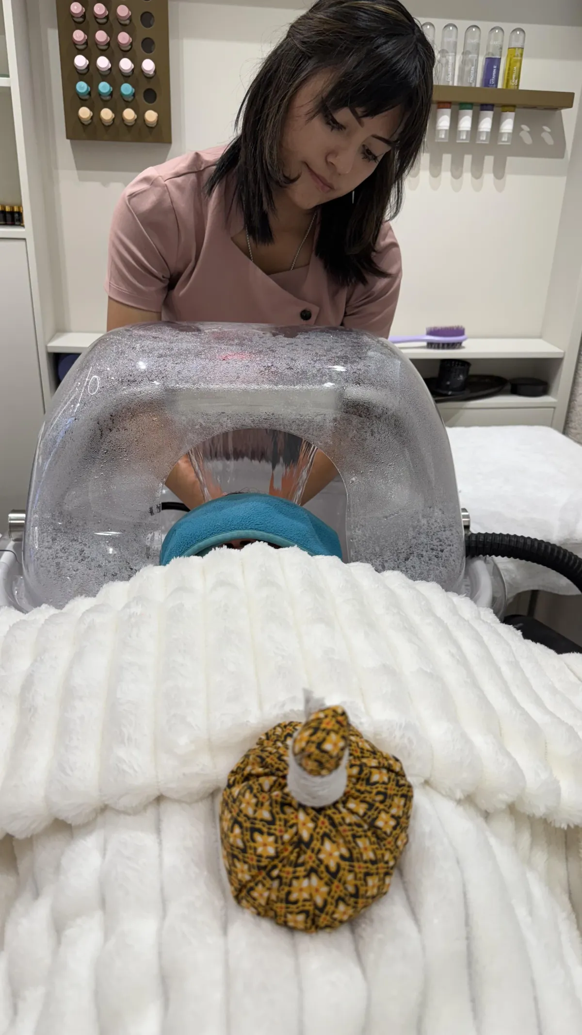 Nuestra camilla spa capilar convierte tu cita en un momento de relax total: luces cálidas, masaje capilar, aroma suave y la sensación de estar en un spa, no en una peluquería.